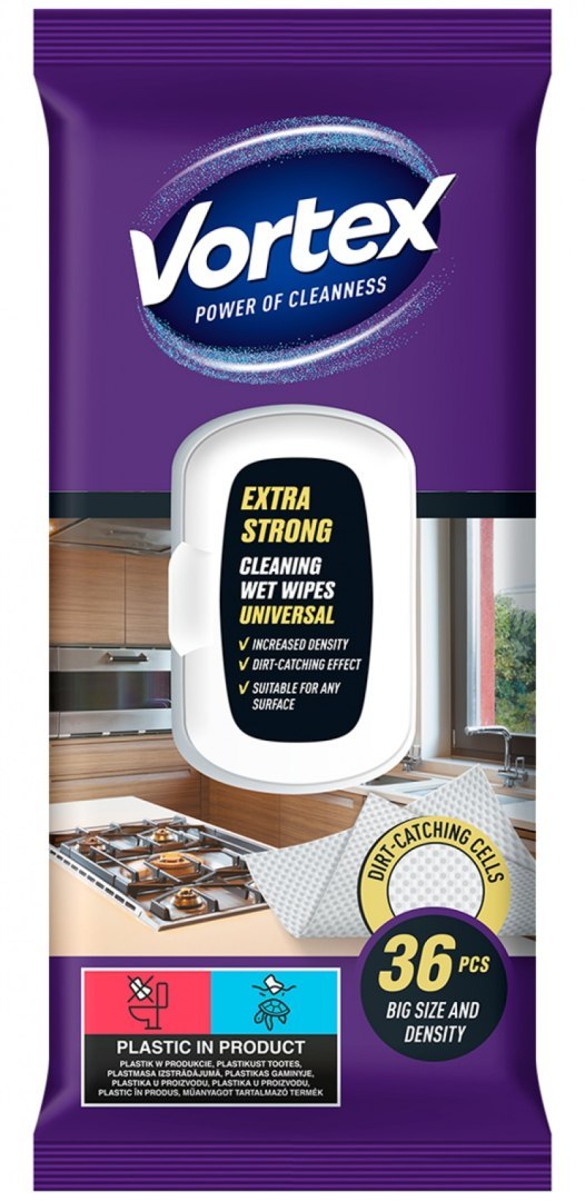 Chusteczki nawilżane VORTEX, uniwersalne, extra strong, z klapką, 36 szt.