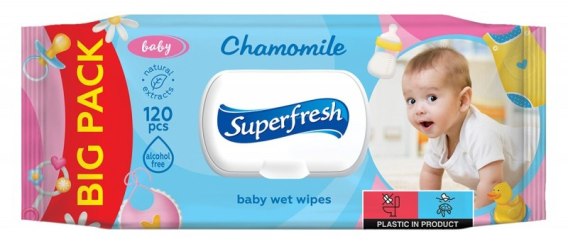 Chusteczki nawilżane dla dzieci SUPERFRESH, z klapką, 120 szt.
