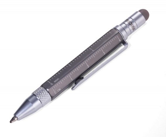 wielofunkcyjny: linijka w centymetrach i calach, śrubokręt płaski i krzyżakowy, rysik do ekranów dotykowych, wkład w kolorze czarnym + 2 zapasowe wkłady