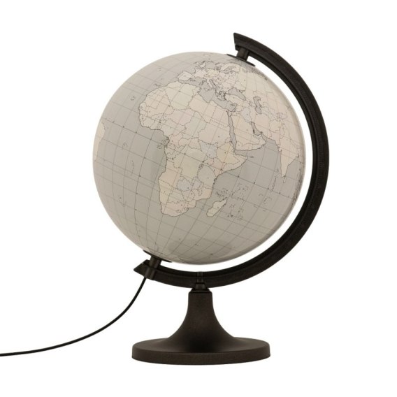 Globus z mapą konturową, z wyraźnym rysunkiem oznaczającym kontury kontynentów i granice państw, bez napisów