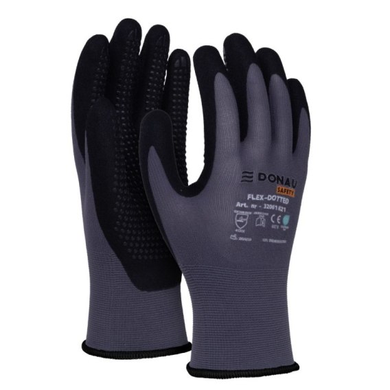 Rękawice DONAU SAFETY Flex-Dotted, kat. II, rozm. 10, szare