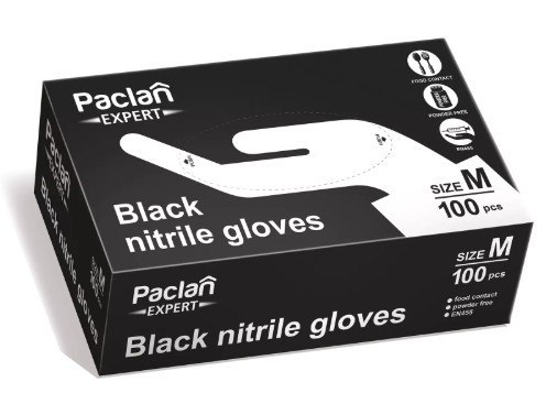 • Rękawice nitrylowe czarne M 100szt. PACLAN