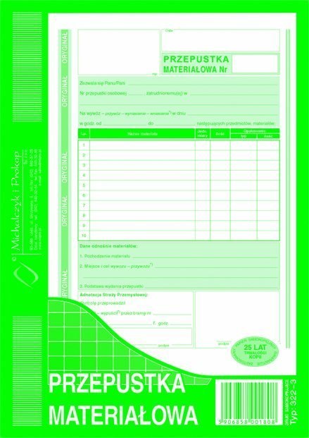 322-3 PM Przepustka materiałow MICHALCZYK I PROKOP