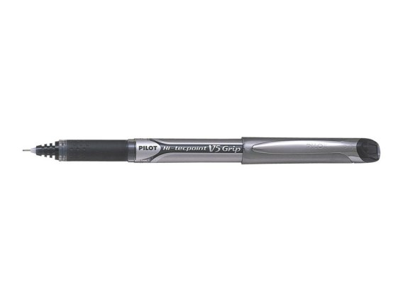 Cienkopis kulkowy z obudową w kolorze tuszu i okienkiem pozwalającym na kontrolę jego zużycia. Posiada wygodny, gumowy uchwyt oraz bezpieczną wentylową skuwkę z metalowym klipem. Możliwość pisania po każdym rodzaju papieru. Polecane dla osób leworęcznych. Cienkopis V5 posiada igłową końcówkę, dzięki której linia pisania jest bardzo precyzyjna. Grubości linii pisania: 0,30 mm, długości linii pisania: 1700 m. Występuje w kolorach czarny, czerwony, niebieski, zielony._V5 produkowany jest w oparciu o technologię V-System, która obejmuje trzy filary technologiczne:_INK WRITING - Kiedy podczas pisania, ze zbiornika wydostaje się nadmiar atramentu, jest on przechowywany w specjalnie skonstruowanej końcówce z wbudowanymi mikro skrzydełkami. Dzięki temu ilość atramentu przepływającego do końcówki jest zawsze stała. Grubość pisanej linii nie zmienia się, pisze do ostatniej kropli._Hi-Tecpoint _ to niepowtarzalna końcówka wykonana ze stali nierdzewnej z zastosowaniem 3 symetrycznych wgłębień do podtrzymywania i wspierania kulki. Dzięki zastosowaniu Hi-Tecpoint, kulka podczas pisania obraca się bardzo lekko i płynnie._ATT System _ czyli system _skuwka w skuwce_. Wewnątrz zewnętrznej skuwki umieszczona jest mniejsza, która szczelnie zabezpiecza końcówkę piszącą. Dodatkowo w razie połknięcia umożliwia oddychanie._