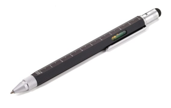 Ten innowacyjny długopis mieści wszystko, czego w danym momencie potrzebujesz: linijka 10 cm i 4 cale, skalę 1:20 i 1:50, poziomicę, śrubokręt płaski i krzyżakowy oraz rysik do ekranów dotykowych.