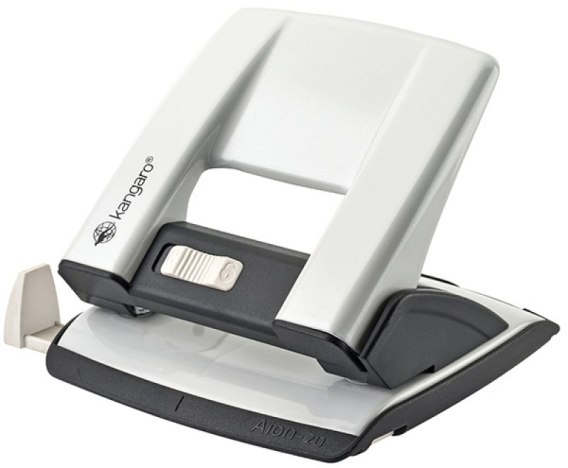 Dziurkacz KANGARO Aion-20/S, dziurkuje do 20 kartek, metalowy, w pudełku PP, metaliczny biały