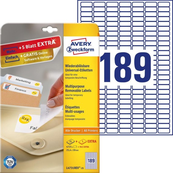 Etykiety uniwersalne L4731REV-25 25,4 x 10 30ark Usuwalne, Avery Zweckform