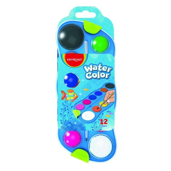 • Farby akwarelowe KEYROAD, z pędzelkiem, 12 kolorów, zawieszka