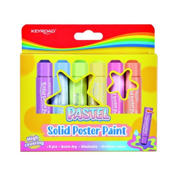 Farby plakatowe KEYROAD, w sztyfcie, pastelowe, 6X10g, pudełko, mix kolorów