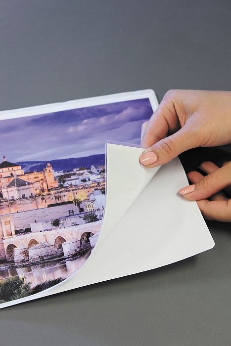 Folia nadająca dokumentowi sztywność i połysk, dodatkowo jednostronnie samoprzylepna.