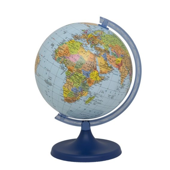 Lekki, niewielki globus z mapą polityczną w polskiej wersji językowej