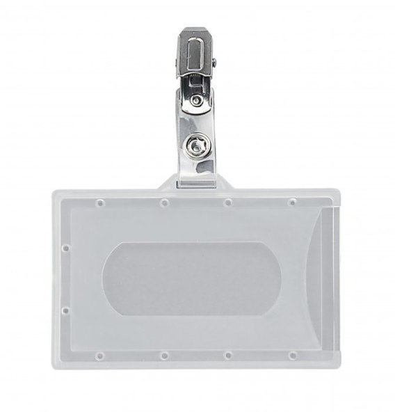 Holder z klipsem Argo__ wykonane z przezroczystego tworzywa typu plexi__ zabezpieczają identyfikator przed załamaniem, porysowaniem itp.__ stosowane jako wygodna kieszonka na karty magnetyczne kontroli dostępu oraz wszędzie tam, gdzie ważna jest trwałość identyfikatorów__ wyposażone w jedwabną taśmę na szyję lub pasek plastikowy z metalowym klipsem mocującym__ opakowanie 50 szt._- jednostka sprzedaży 1 opakowanie