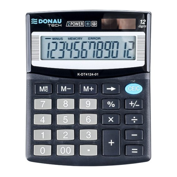 Kalkulator biurowy DONAU TECH, CI-SDC812NR, 12-cyfr. wyświetlacz, wym. 122x100x32 mm, czarny