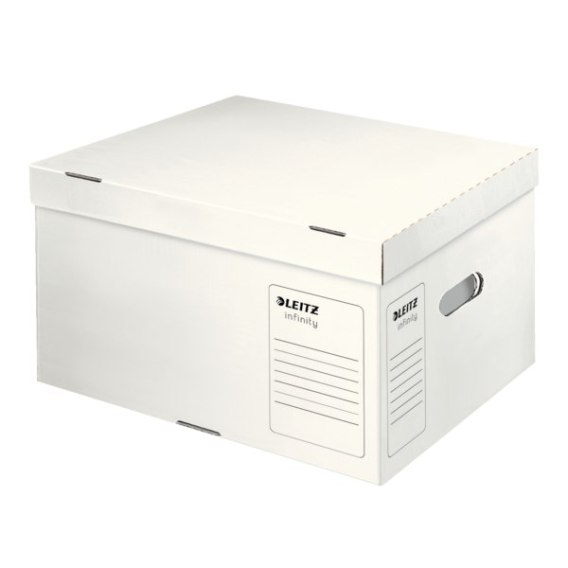 Pudła i teczki Leitz Infinity są rekomendowane do długoterminowej_archiwizacji dokumentów w narodowych archiwach, muzeach, bibliotekach,_szpitalach czy prywatnych firmach._Produkty Leitz Infinity spełniają najwyższe normy jakościowe ISO (16245-A)._Innowacyjna konstrukcja z automatycznie składanym dnem oszczędza czas_i wysiłek. Pudła są gotowe do użycia w kilka sekund._Wyprodukowane w 100% z bezkwasowej tektury z włókien pierwotnych_(virgin). Wszystkie pudła archiwizacyjne Infinity są wykonane z lekkiej,_a jednocześnie wytrzymałej tektury falistej, której wytworzenie pochłania_do 60% mniej surowca w porównaniu z powszechnie stosowanym kartonem._ Spełniają wymagania ISO 16245-A dla długotrwałego_przechowywania dokumentów__ Testowane przez PTS Germany i z certyfikatem tej_organizacji__ Najwyższej jakości tektura (wszystkie 3 warstwy wykonane_z włókien pierwotnych)__ Bezkwasowe__ Wartość pH od 8,0 do 10__ Tektura wytworzona z rezerwą alkaliczną gwarantującą_ochronę przed otoczeniem kwasowym wpływającym na_starzen