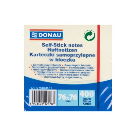 Kostka samoprzylepna DONAU, 76x76mm, 1x400 kart., pastel, jasnożółty