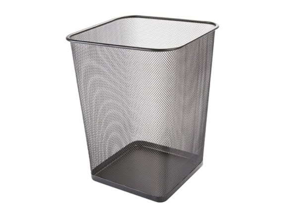 Kwadratowy kosz na śmieci wykonany z metalowej siateczki powlekanej lakierem