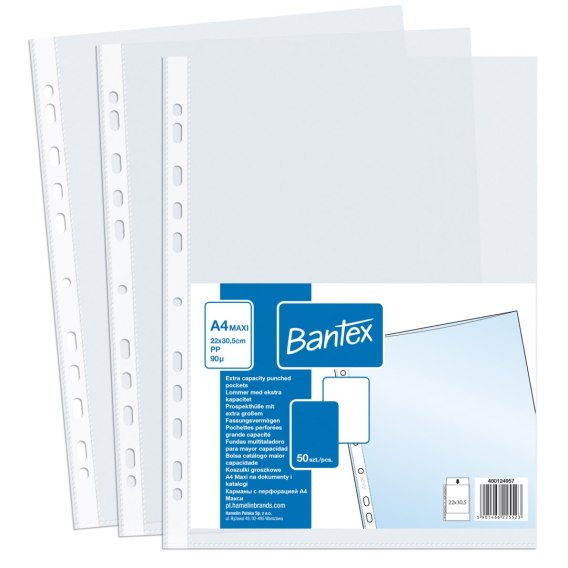 • Koszulki groszkowe, poszerzane A4+ MAXI 90mic., w folii (50szt) BANTEX 400124957
