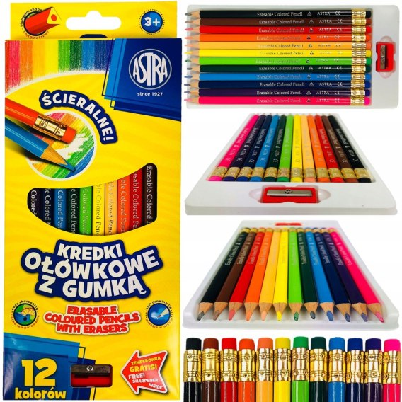 Kredki ołówkowe z gumką 12 kolorów ASTRA, 312119001