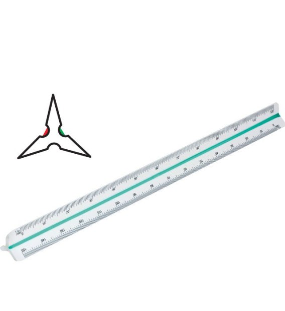 _ wykonana z tworzywa sztucznego w kolorze białym__ trójkątny przekrój__ kolorowe oznaczenie każdej ze stron__ 6 precyzyjnych skali: 100/200/250/300/400/500