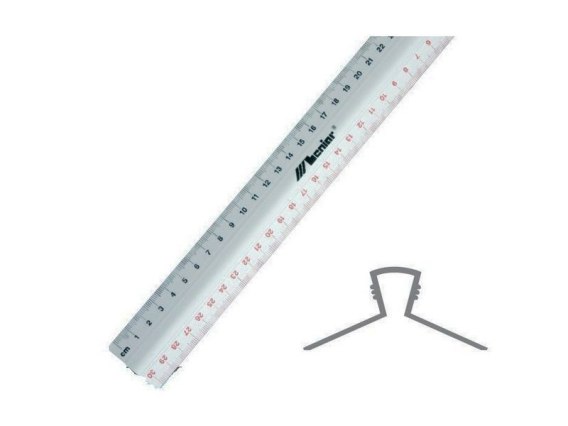 Linijka z uchwytem Leniar__linijka z anodowanego aluminium__wzdłuż całej linijki wygodny uchwyt do trzymania__nadrukowane dwie podziałki__podziałka 20 cm__jednostka sprzedaży 1 sztuka