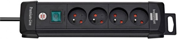 Listwa zasilająca BRENNENSTUHL Premium, 4 gniazda, zaczep, 1, 8m, z wył., czarna