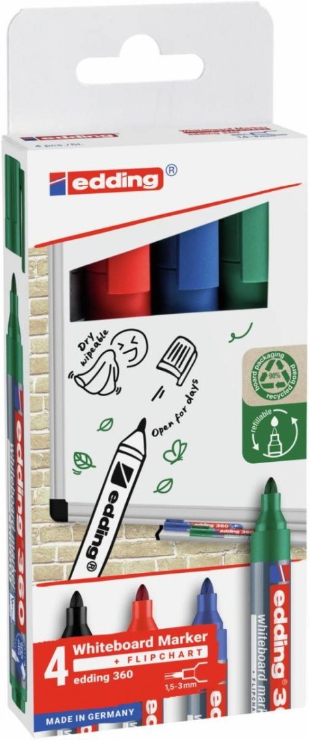 Marker do tablic suchościeralnych e-360 EDDING, 1,5-3 mm, 4 szt., mix kolorów