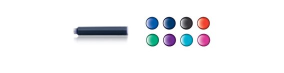 Standardowe, krótkie naboje atramentowe _Standardowe naboje atramentowe przeznaczone do piór wiecznych na naboje marki Pelikan oraz wielu inych marek. _Opakowanie zawera 6 naboi atramentowych TG/6_Dostępne wersje kolorystyczne: Niebiesko-czarny, błękit królewski, czarny brylantowy, czerwony brylantowy, zielony brylantowy, turkusowy, fioletowy, różowy