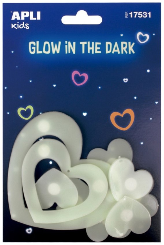 Naklejki świecące w ciemności APLI, serca, 9 szt.