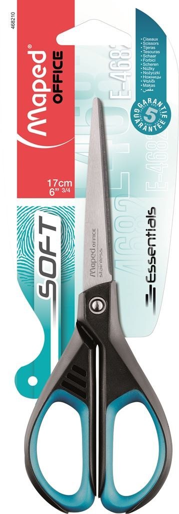 Nożyczki Essentials Soft__uniwersalne nożyczki o szerokim zastosowaniu__trwałe ostrza i nit wykonane ze stali nierdzewnej__miękkie wewnątrz uchwyty, dają poczucie komfortu w czasie pracy,_redukują uczucie ucisku i minimalizują zmęczenie dłoni__dostępne w długości 17 cm z symetrycznym uchwytem_i 21 z asymetrycznym uchwytem__jednostka sprzedaży 1 sztuka