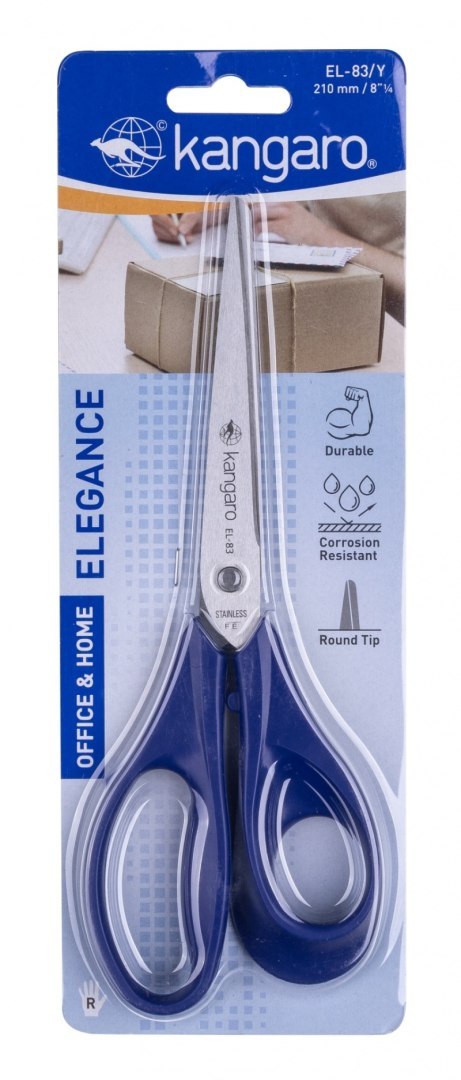 Nożyczki biurowe KANGARO, 21 cm, dla praworęcznych, blister, mix kolorów