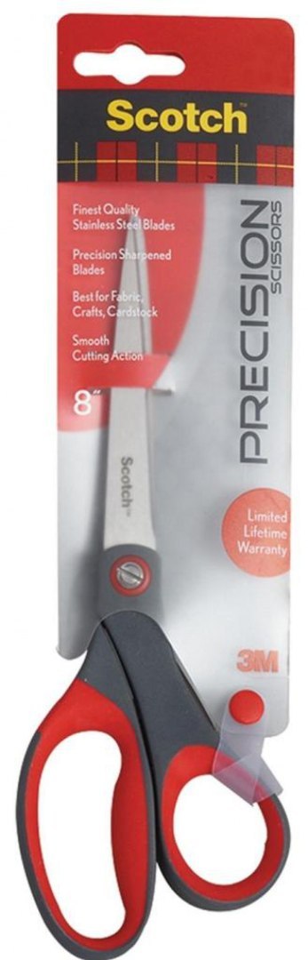 Nożyczki biurowe SCOTCH® (1448), precyzyjne, 20,5cm, czerwono-szare