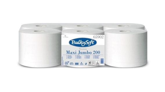 Papier toaletowy w roli centralnego dozowania (6rolek), 2 warstwy, biały, celuloza, 200m., MAXI JUMBO, 65902, BULKYSOFT
