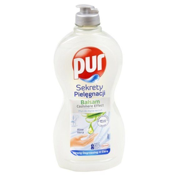 Pur Balsam z dodatkiem aloesu jest delikatny dla dłoni i nie wysusza ich podczas zmywania