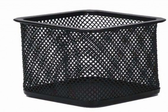 Kwadratowy pojemnik na spinacze wykonany z metalowej siateczki powlekanej lakierem