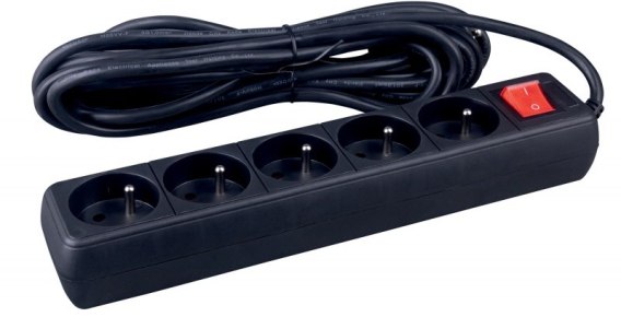 • Przedłużacz OFFICE PRODUCTS, 5 gniazd, 3m, z uziemieniem i wyłącznikiem, czarny