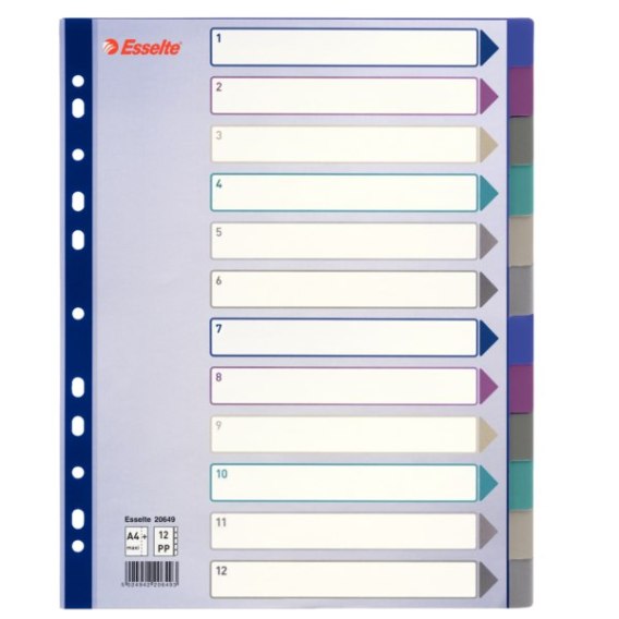 Przekładki plastikowe Multicolor PP, A4 Maxi - 12 kart Esselte, 20649