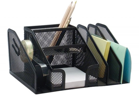 Przybornik na biurko, wykonany z metalowej siateczki powlekanej lakierem