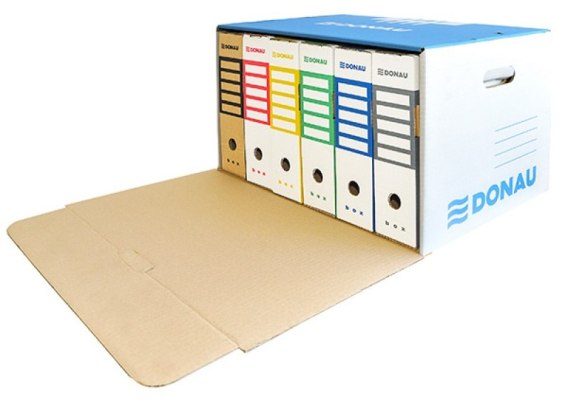 Pudło archiwizacyjne wzmocnione DONAU, karton, zbiorcze, przednie, niebieskie