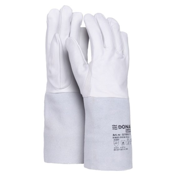 • Rękawice spawalnicze DONAU SAFETY DS-WELTIG, TIG, skóra kozia, rozm. 8/M, biało-szare