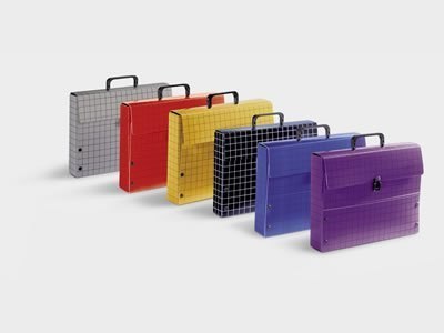 _wykonana z tektury o grubości 1 mm__dwustronnie barwiona, pokryta folią polipropylenową__do formatu A4__szerokość 60mm__posiada nadruk krata wykonany metodą sitodruku__zamykana na zamek z tworzywa__wyposażona w rączkę z tworzywa