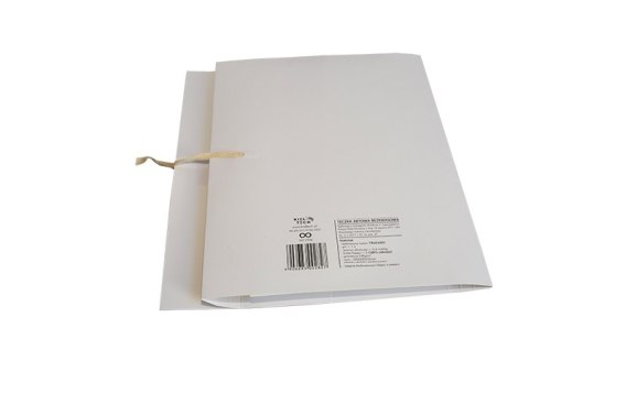 Teczka archiwizacyjna bezkwasowa posiadająca certyfikat ISO 9706 . Spełniająca wymagania określone w rozporządzeniu Rozporządzenie Ministra Kultury i Dziedzictwa Narodowego z dnia 20 października 2015 r. w sprawie klasyfikowania i kwalifikowania dokumentacji, przekazywania materiałów archiwalnych do archiwów państwowych i brakowania dokumentacji niearchiwalnej. Wykonana z kartonu obustronnie bielonego_pH > 7.5_rezerwa alkaliczna > 0.4 mol/kg_liczba Kappa < 5 (100% celulozy). Wykonana z najwyższej jakości, niebielonej surówki bawełnianej. Klej z atestem PAT.