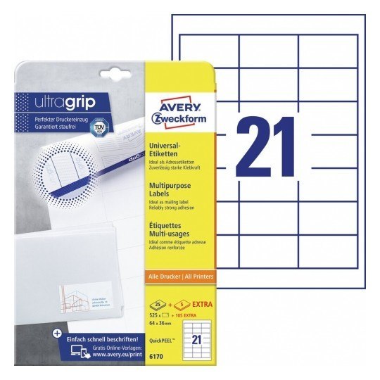 Trwałe etykiety uniwersalne 6170 64 x 36 30 ark. Avery Zweckform
