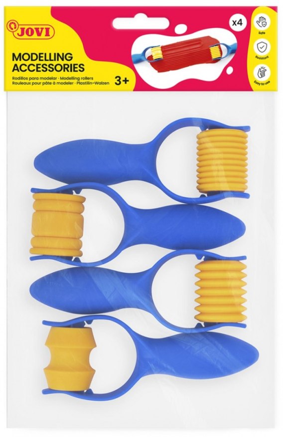 Wałki do mas plastycznych JOVI, 4 szt., mix kształtów, mix kolorów