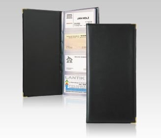Wizytowniki zawierają 12 wysokoprzezroczystych koszulek trwale przymocowanych do grzbietu okładki, pozwalających na włożenie 96 szt. wizytówek. Produkowane w kolorze czarnym.