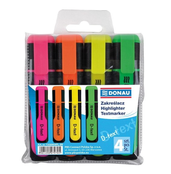 Zakreślacz fluorescencyjny DONAU D-Text, 1-5mm (linia), 4szt., mix kolorów