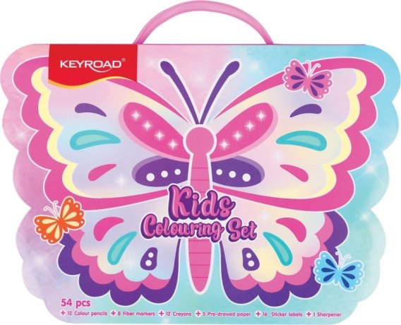 Zestaw artystyczny dla dzieci KEYROAD, 54 elementy, pudełko z rączką, motyl