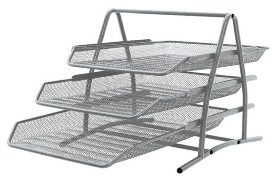 Zestaw trzech wysuwanych szuflad wykonany z metalowej siateczki powlekanej lakierem