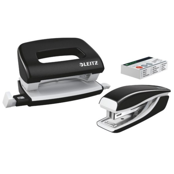 Zszywacz + dziurkacz metalowy Leitz Mini WOW, czarny, 10 lat gwarancji, 10 kartek 55612095